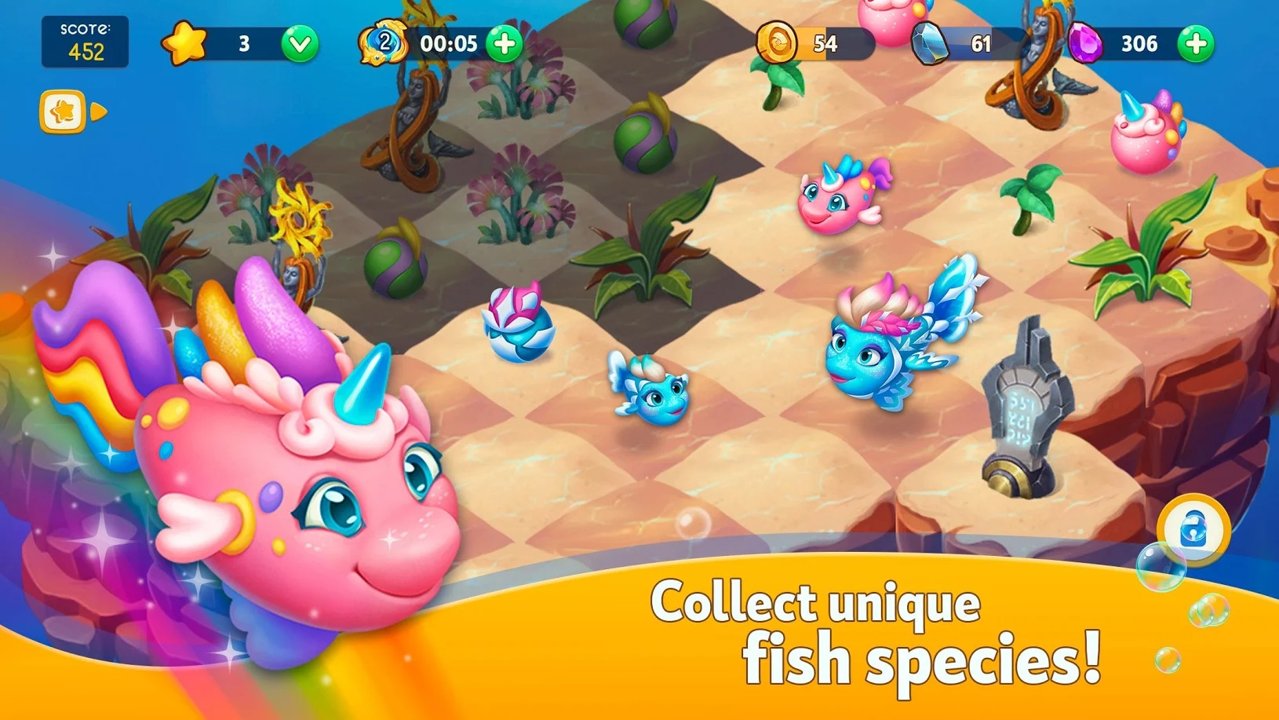 前往水下鱼类王国,从**的恶棍中拯救它,并恢复梦幻般的海洋生物世界。探索古老魔术的秘密,解决难题,并亲眼目睹各种海居民的生活!在“ Sea Merge!”中创建您的海底世界!