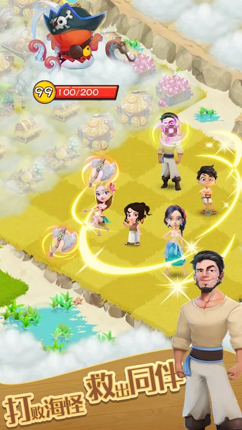 通过合并不同的物品,打败巨大的海怪,拯救并结识岛上的伙伴,每个新角色都会帮助你更快地返回家园。