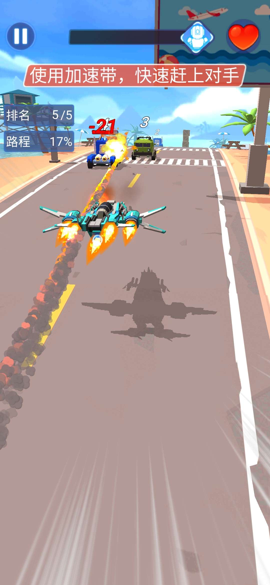 控制汽车人打败对手 多层次! 穿越龙卷风肆虐的郊区道路,穿越安静幽深的高速公路,或在白雪皑皑的街道上横冲直撞。 无论选择哪条路,都难免与对手正面冲突,必须打败对手。 解锁并升级超过10 种不同的汽车人。 每个汽车人都可以配备各种升级物品,例如武器、轮胎、硬度等。 不要给对手任何机会。 > 凶猛追击,激战冲出围城 >升级相应属性,增加游戏中逃生距离 > 合理利用加速度来躲避敌人的攻击,让你长时间保持最快速度 > 控制汽车人打败对手