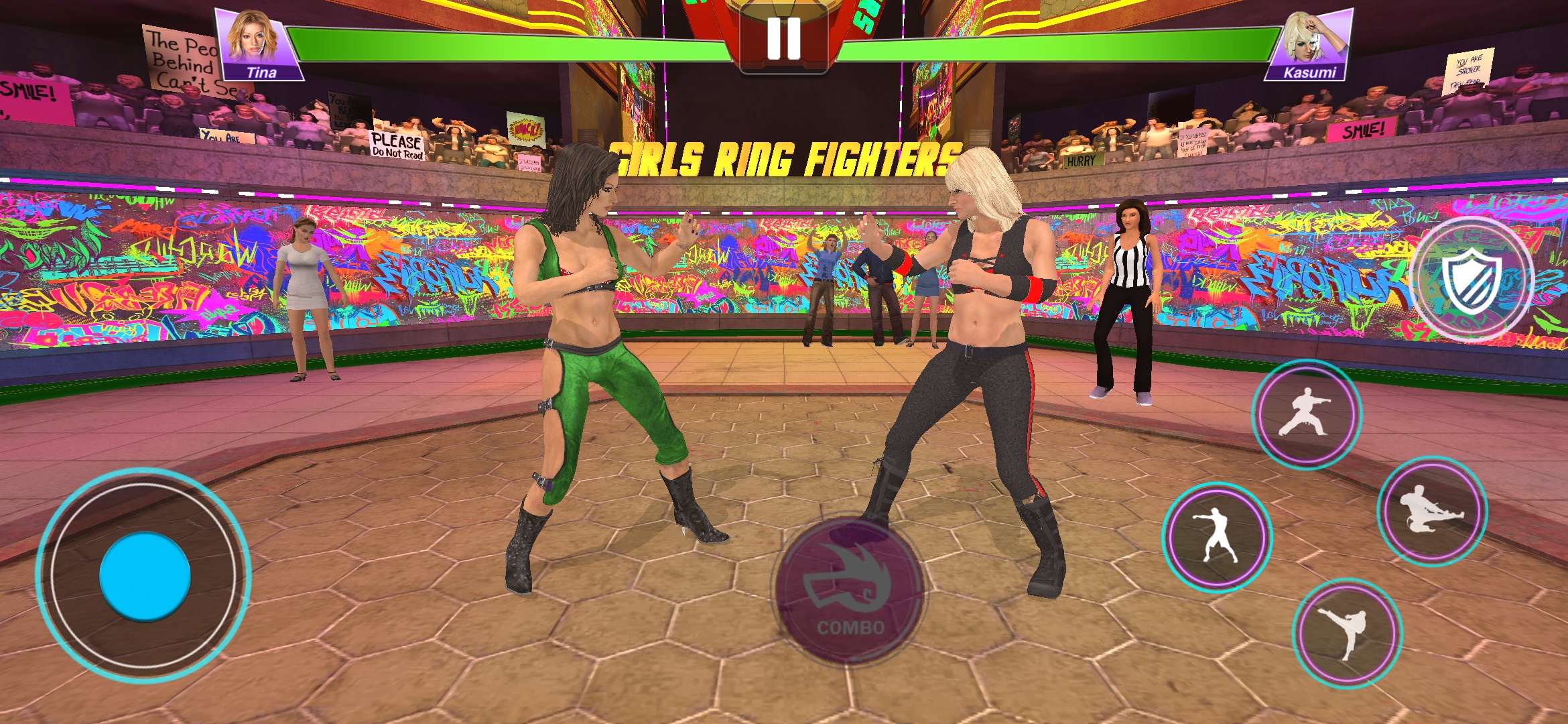 1、《女子摔跤_搏击》游戏中,简单的触摸操作,逼真的战斗打击感,给你带来不一样的刺激感。