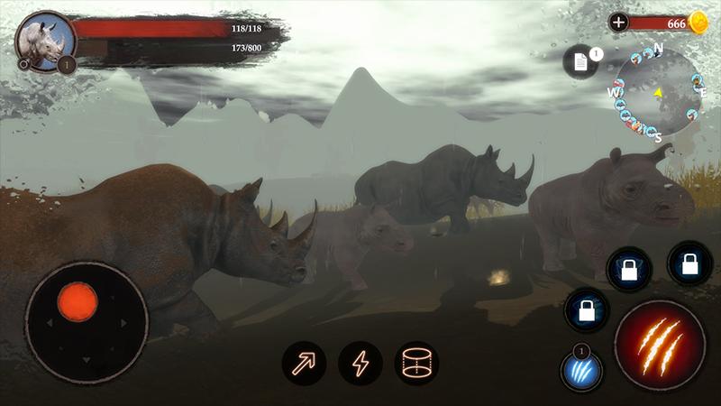 4、猎杀野生动物处于危险之中的黑暗。《犀牛模拟》游戏2023最新版快来八门神器下载吧!