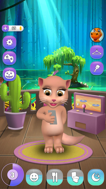 动物游戏爱好者的好消息,尤其是猫游戏爱好者。认识谈话Inna - 你的新虚拟宠物。如果你喜欢猫,但如果你没有机会拥有真正的这个,那么这个免费的Android应用程序对你来说是完美的。现在,您可以随时随地玩虚拟宠物,随时随地随身携带她。当你和她一起玩时,Inna会很高兴,但如果你离开她,她会很伤心。不要让你的虚拟宠物难过,照顾她,跟你的虚拟猫说话,她会用可爱的声音重复你所说的一切。 洗澡 Inn a, 帮她洗手 Inna是一只可爱的猫,我们确信你不会很难照顾她。相反,你真的很乐意和你的新虚拟朋友一起玩。所以,如果你真的喜欢说话猫游戏,那么 ❤ 我的会说话的猫 Inna ❤适合你。