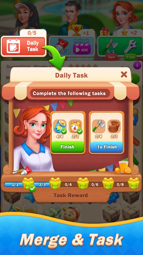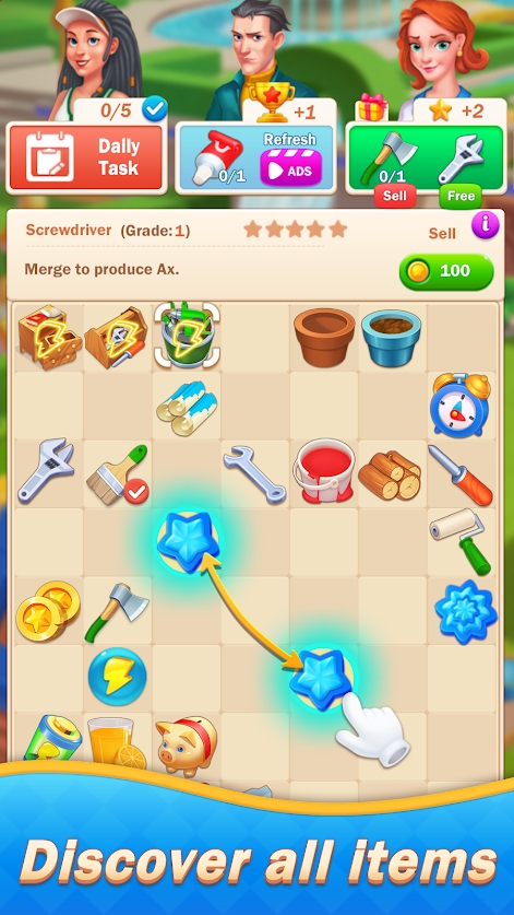 工具、珠宝和宝箱,数百种物品等你来探索!满足您的收藏**,每件物品都会提供奖励!此外,还有很多和蔼可亲的朋友来和你一起完成任务,帮你解锁庄园。