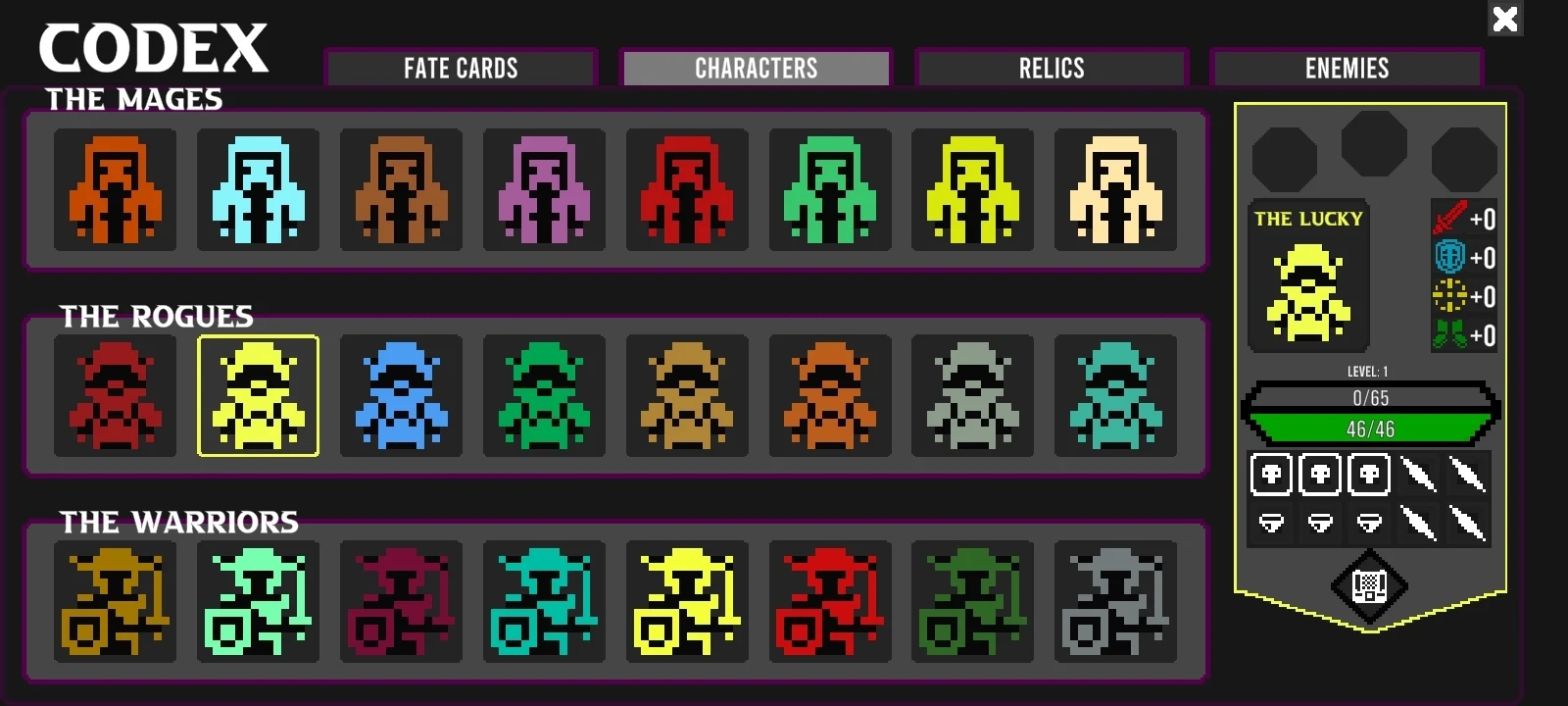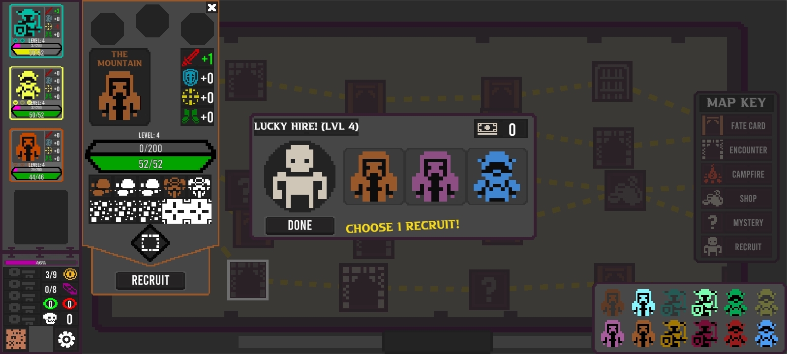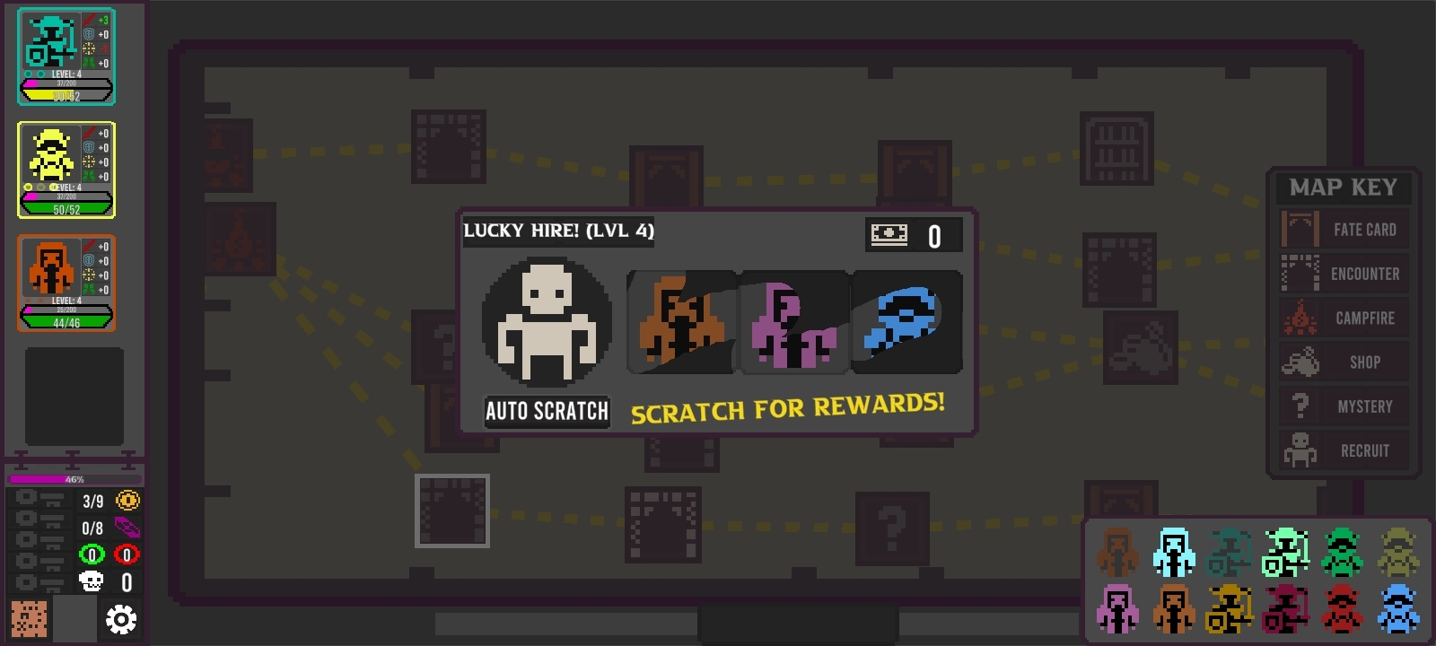 每次运行 Dungeon Reels Tactics 都将包含 12 个不同的角色,您可以在整个冒险过程中招募这些角色。要获得新兵,您需要从堕落的敌人那里收集灵魂碎片、解决命运卡或在商店购买新兵门票。如果一名党员在战斗中倒下,他们将会死亡,您需要招募一名党员进行冒险。