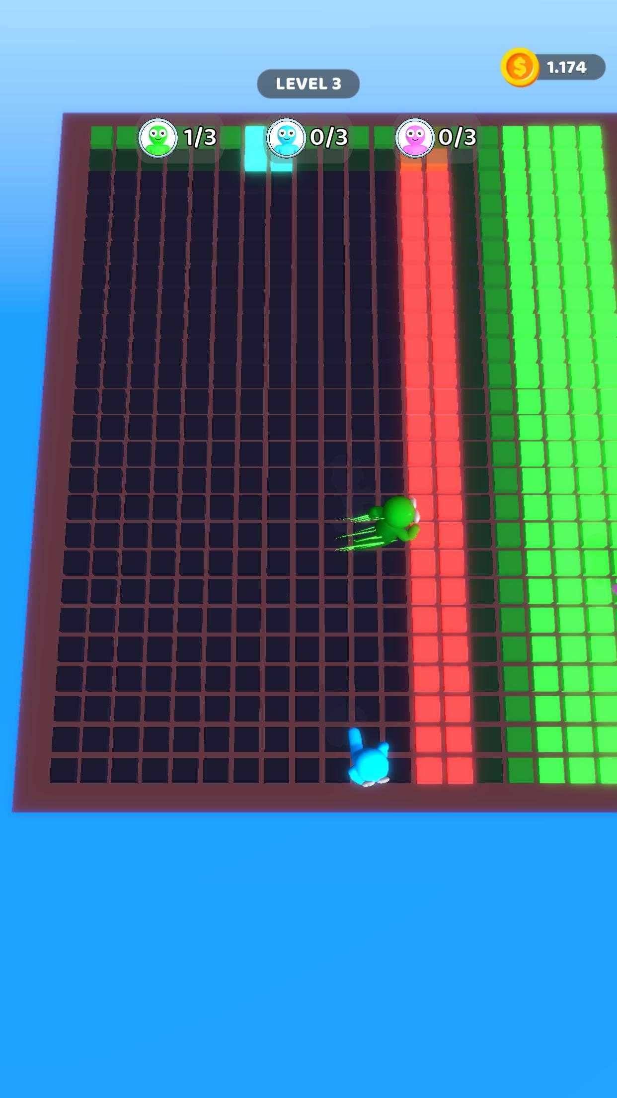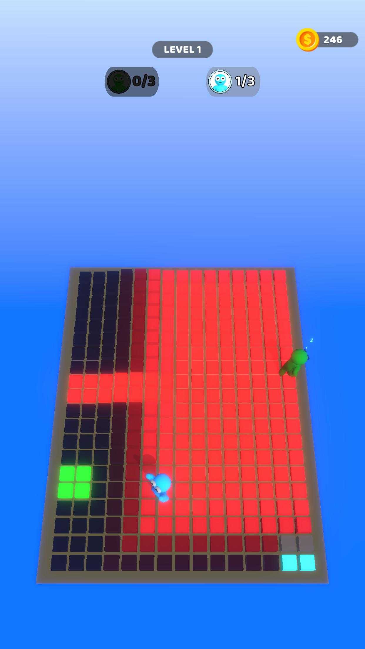 向你的广场跑去。如果你这样做三次,你就赢了。不用说,你必须比你的竞争对手快得多。 你不应该被红线缠住。 流畅的游戏操作和简单的控制。
