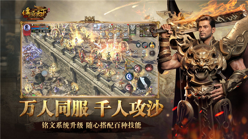 《传奇天下》是一款正版授权、精心打造的传奇类手游。游戏在战法道三职业、打怪打宝、红名pk、行会攻沙等经典元素的基础上,集结端游研发团队,通力合作,用顶尖的UE4引擎,刻画精细的生态环境、栩栩如生的人物模型;配合铭文加持下的全新技能特效,打造震撼的多人同屏,纯血火拼的攻沙玩法,致力于为玩家们带来指触间,最畅快的城战体验!