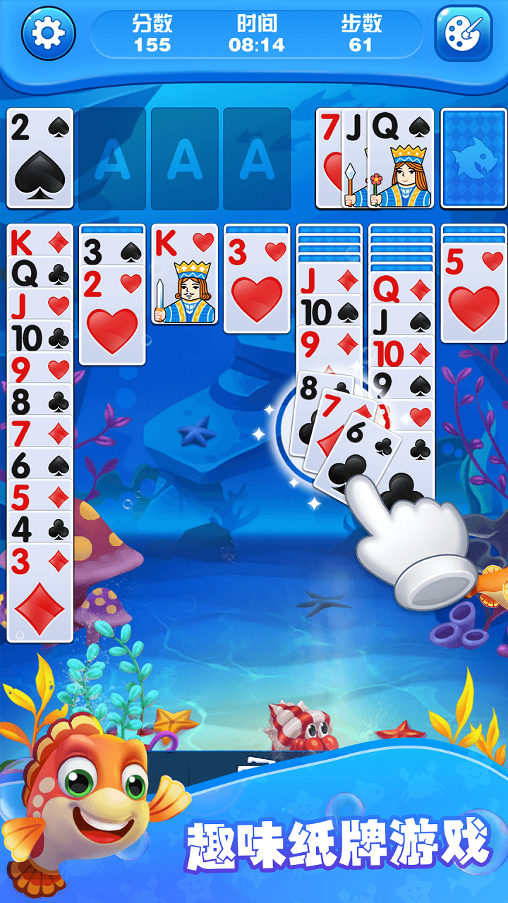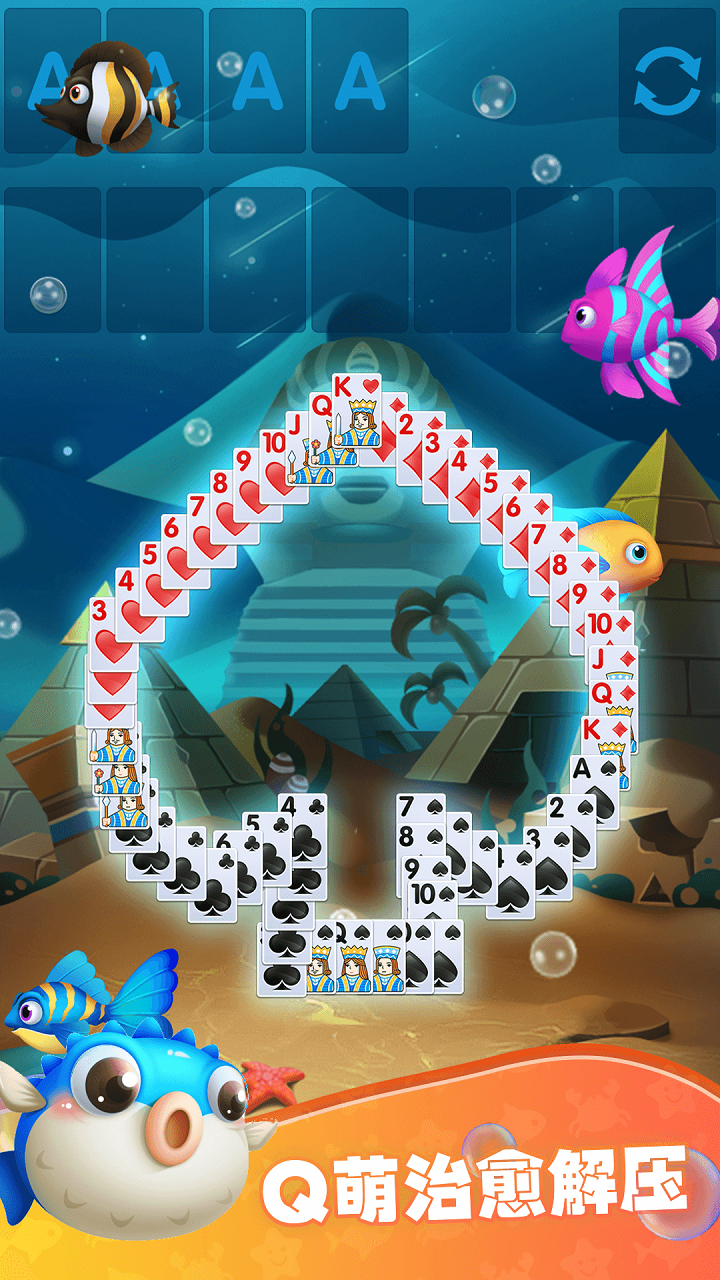 除了经典的纸牌接龙游戏,当你玩这款纸牌接龙游戏时,你还可以创造自己独特的海底世界。