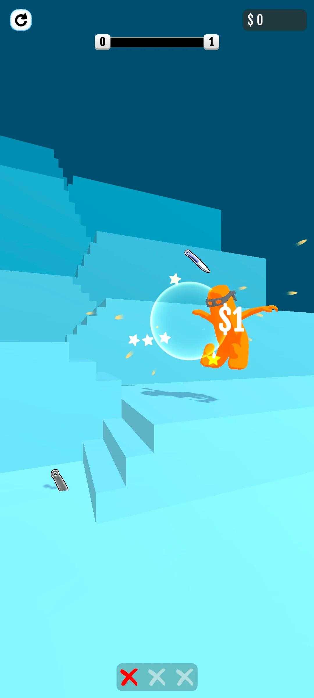 1、《翻转刀射击》游戏中,趣味的内容涉及,用你最独特的操作来完成每一项挑战,用操作获得积分。