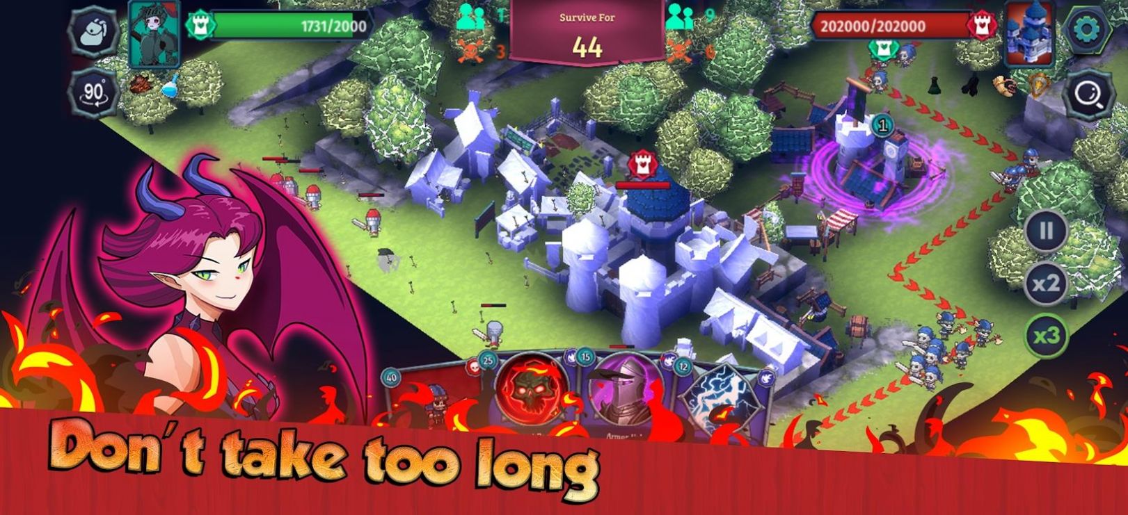 3、将您的部队部署到正确的车道上,以对抗生者的力量并征服他们的城堡。
