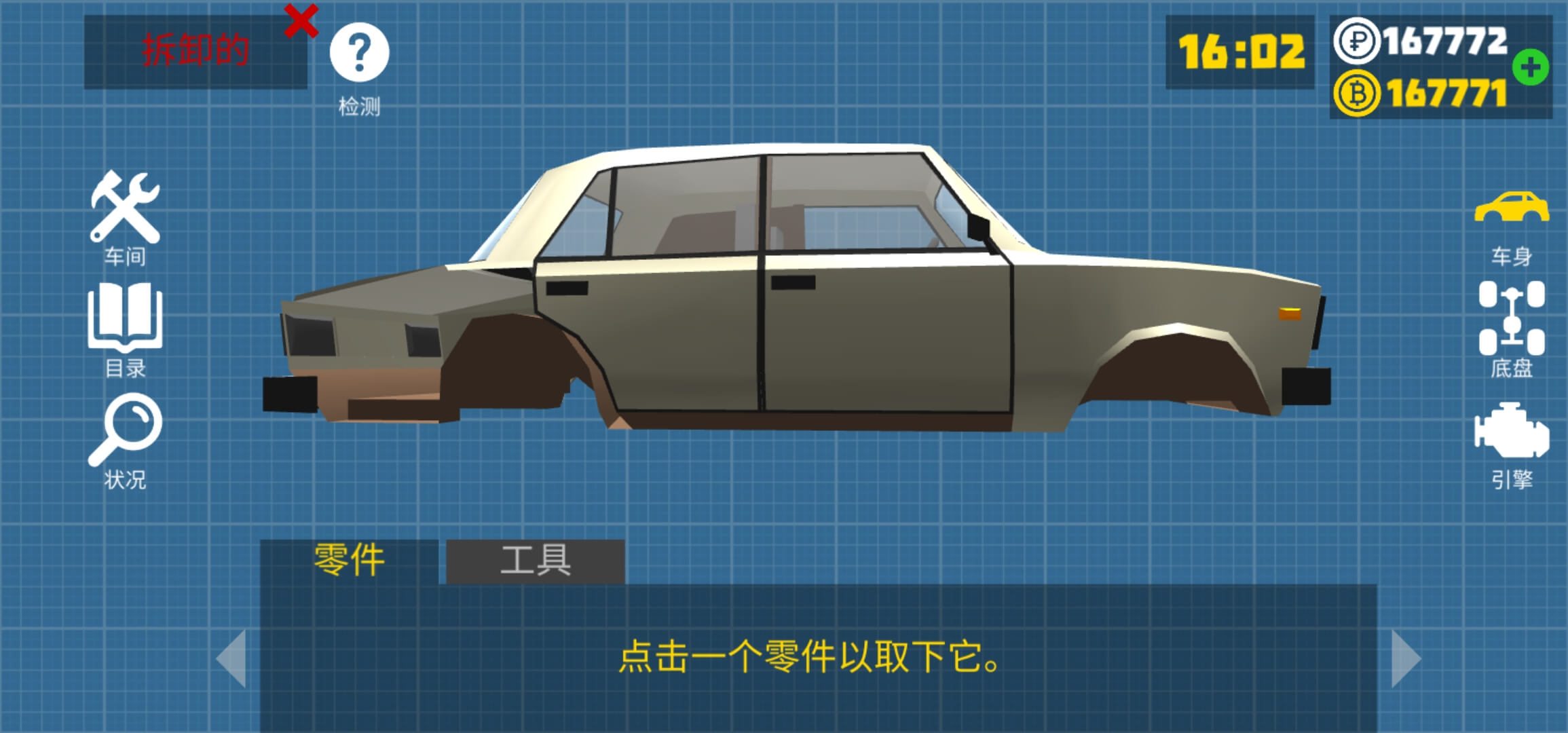 每辆车由50多个零件组成,分为3个类别:车身、底盘和发动机。如果您愿意,可以进行调整,并用运动、赛车和其他修改来替换部分车身和悬架部件!