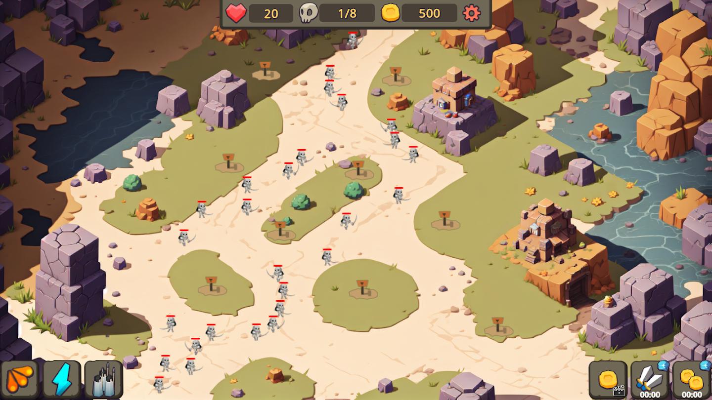 元素防御2是一款塔防游戏。游戏中内置了5种类型的25个防御塔。一些防御塔带有一些高伤害的技能。通关前期后,总共可以解锁25个级别,没有付费级别。添加了五个元素以增加防御塔的属性。