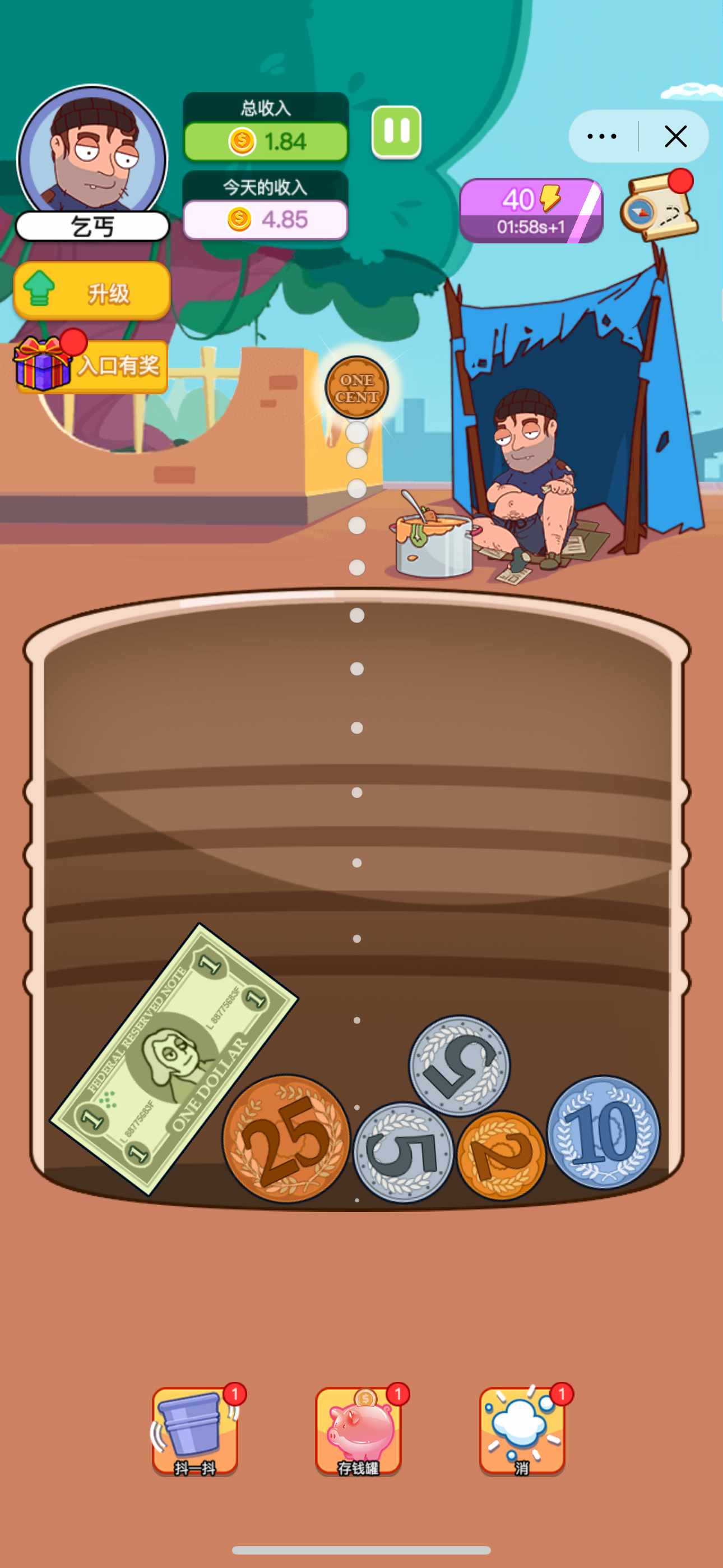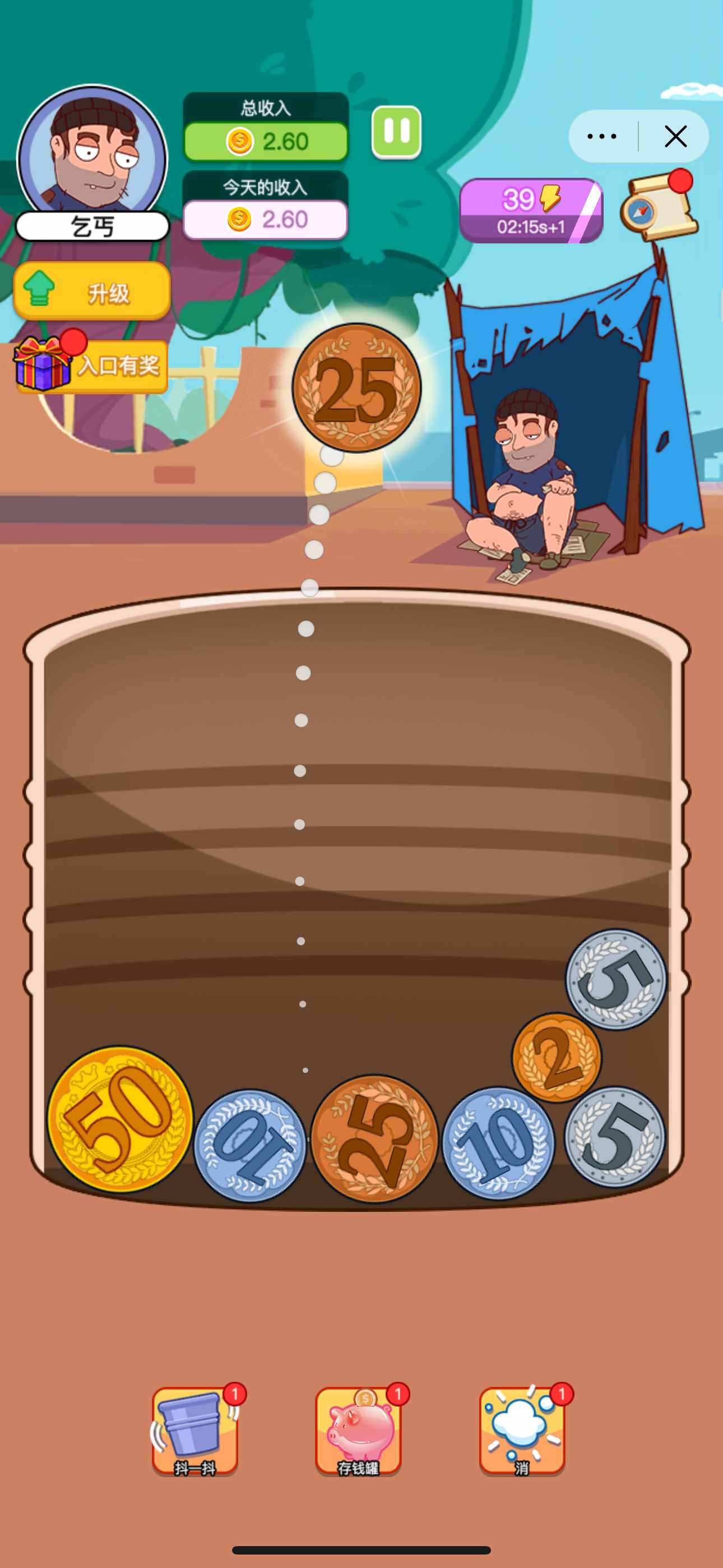 打到100关是一款休闲合成类游戏,将相同硬币进行合成可以不断升级。