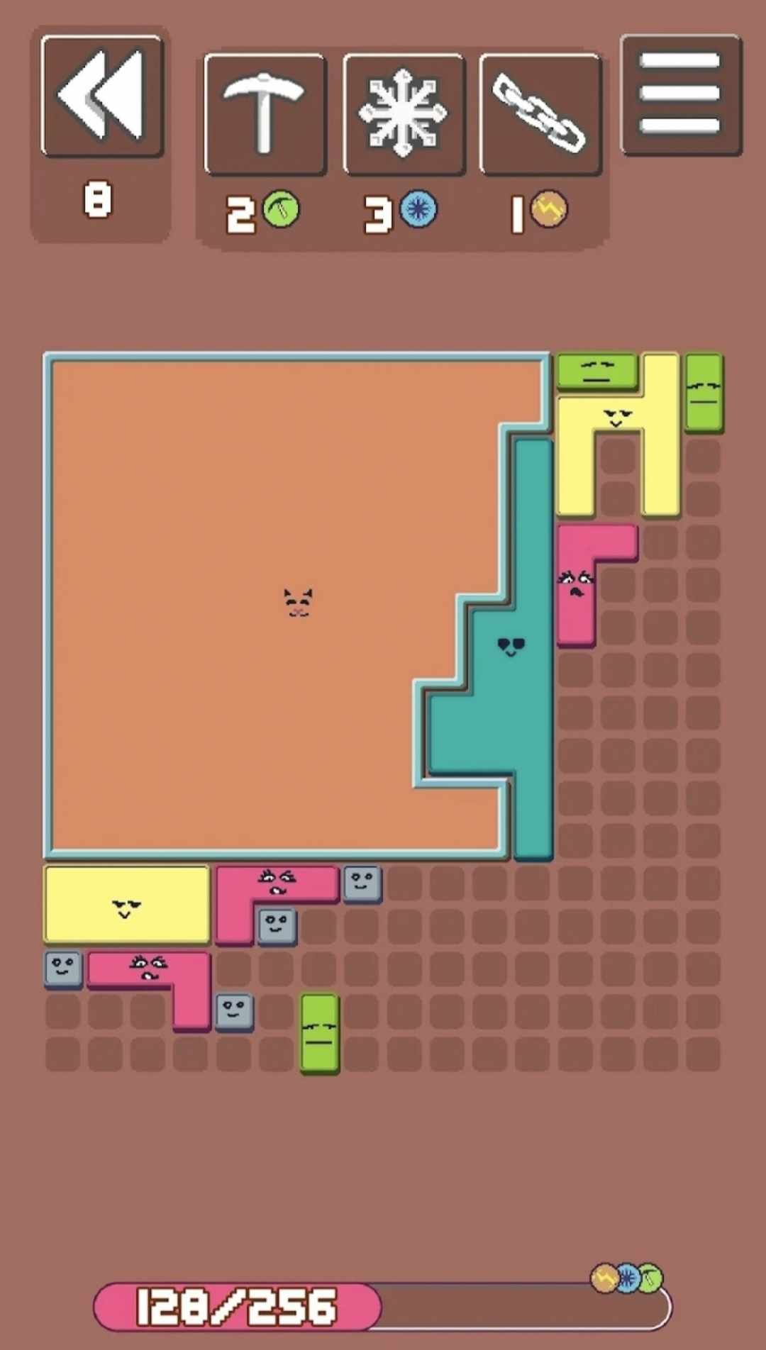 将方块合并在一起以创建更大的方块。使用镐等工具帮助自己应对棘手的情况。你能走多远?