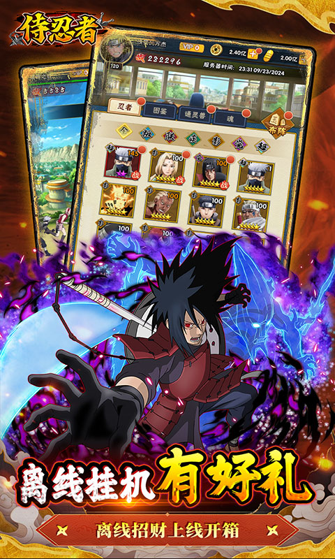 《侍忍者》一款以人气的动漫为题材的0.1折火影卡牌免费版,深度还原漫画剧情,再度重温鸣人的成长历程。每日签到送连抽,招募独特忍者,召唤通灵兽和尾兽,自由搭配无敌阵容。精美画面、炫酷技能、刺激的战斗玩法,离线挂机有好礼,离线招财上线开箱。传奇忍者同场竞技,一起体验全新的忍者世界。