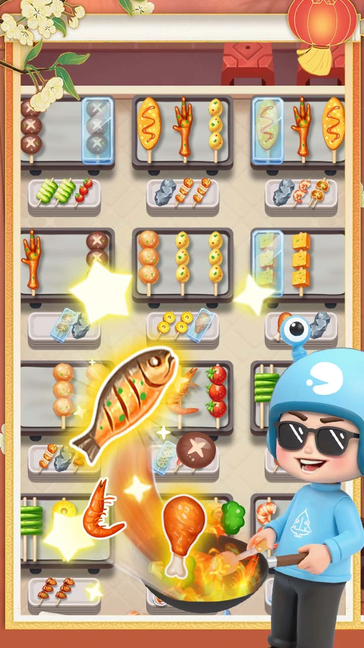 烧烤串串消提供了丰富的串串类别,从经典的羊肉串、鸡翅,到新奇的素菜串,各种美味应有尽有。玩家可以根据自己的口味进行选择,组合出属于自己的完美烧烤菜单。在这个游戏里,烹饪不再只是简单的食材搭配,它更是一个创造力的释放,玩家可以尝试各种不同的组合,探索无尽的美味可能。
