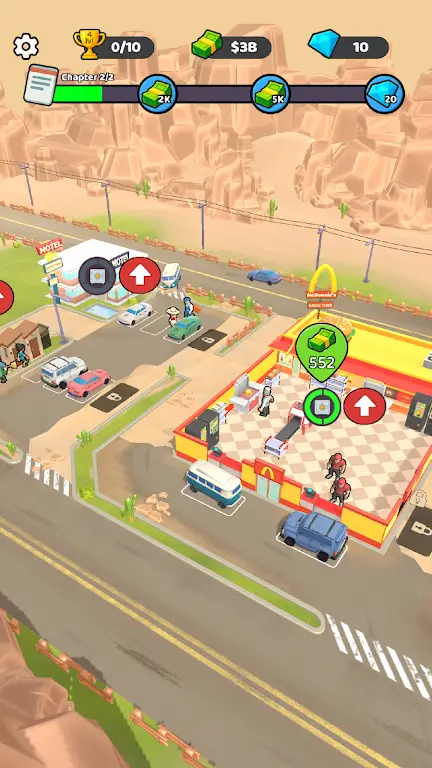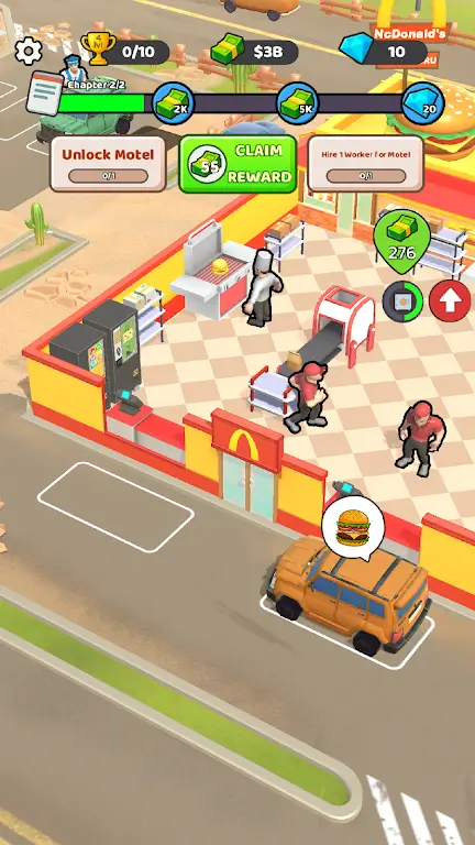 作为一款闲置经营类游戏,《汽车餐饮帝国》让您可以轻松上手,迅速投入经营的乐趣。您只需点击屏幕,就能为顾客提供美味的餐饮,营造繁忙的得来速餐厅。通过升级点餐柜台和雇佣优质的点餐人员,您能够有效缩短客户的等待时间,提高顾客的满意度。