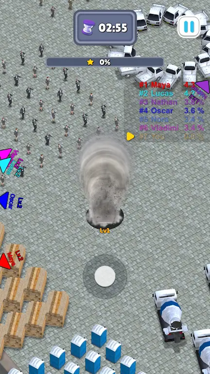 随着游戏的进行,玩家可以通过吞噬物体获得经验值,进而提升龙卷风的等级。每个新的等级都会带来不同的能力加成,比如吞噬速度和容量的提升。这种成长机制让玩家在游戏中感受到持续的成就感,激励着他们不断挑战自己,创造更好的成绩。