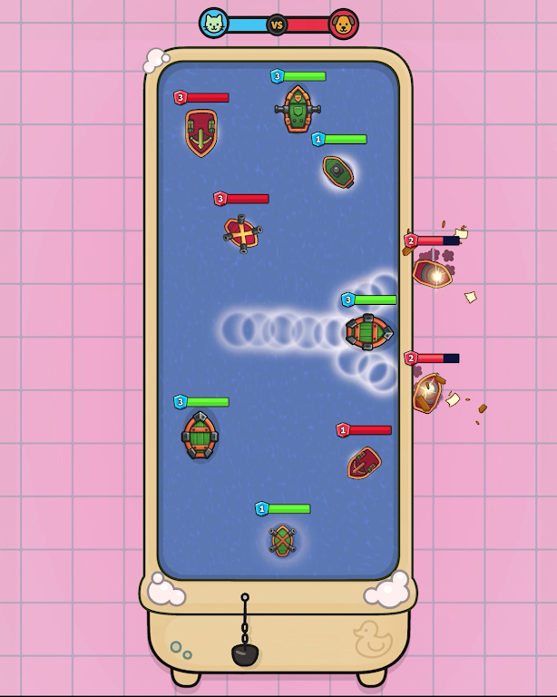 《迷你海军》中的物理效果让每一轮海战都有了更多的变数。舰船之间的撞击不仅能造成直接的伤害,还可以利用环境将敌人推入危险区域,甚至将其击出竞技场。这种真实而生动的物理反馈,使得每次对决都充满惊喜和刺激感,鼓励玩家寻找最佳的战斗策略,充分利用战场环境。