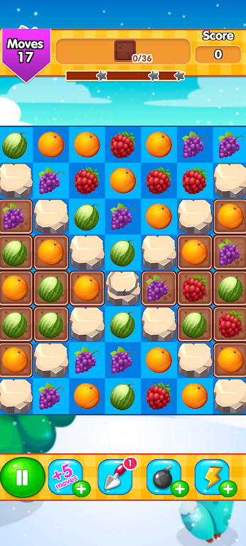 在贝瑞爆裂中,您不仅仅是在解决谜题,您还在探索一个生动有趣的水果世界。每一次滑动手指,您都将与缤纷多彩的水果互动,在每一个关卡中收集丰厚的奖励与成果。尽情享受与可爱水果们的亲密接触,感受它们带来的乐趣与惊喜。每一个成功的匹配都仿佛在为您带来欢呼声,让您在游戏的过程中体验到无与伦比的快乐。