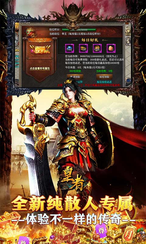 上线就送极品神装,特殊,自动捡物,自动回收,超大背包和仓库。超大直购币个人奖池,杀怪抽奖两不误,下个天命之子就是你了。炫酷时装,神装,打怪各种爆爆爆爆爆爆!PK超爽,流畅,无秒杀,人人可终极。时间充足,所有都能毕业,自由交易,一切靠打!!速度上游戏体验吧!!!本服承诺玩家完全白嫖,免费到顶。