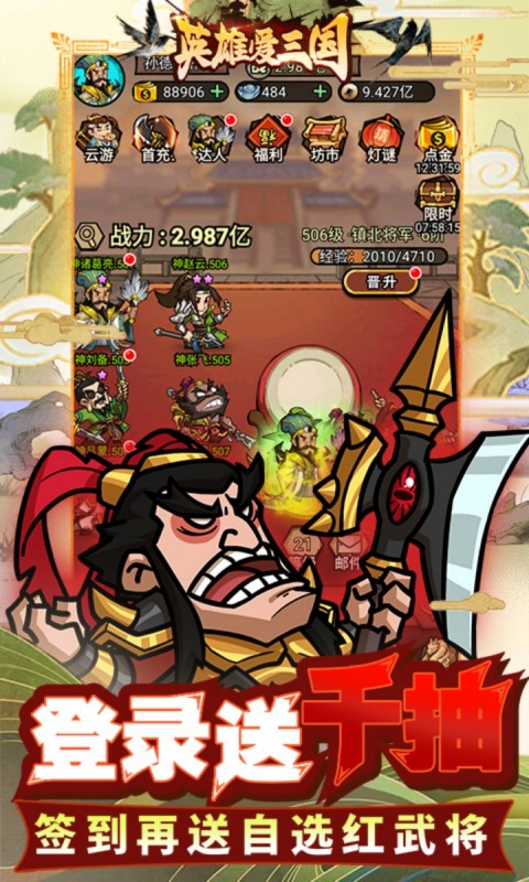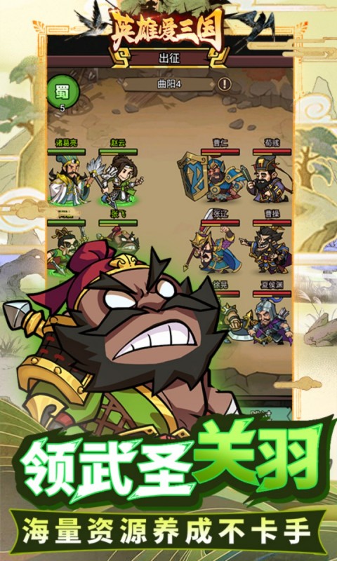 采用Q版与写实结合的画风,角色造型兼具呆萌与英气,技能特效华丽,场景细节还原三国历史氛围