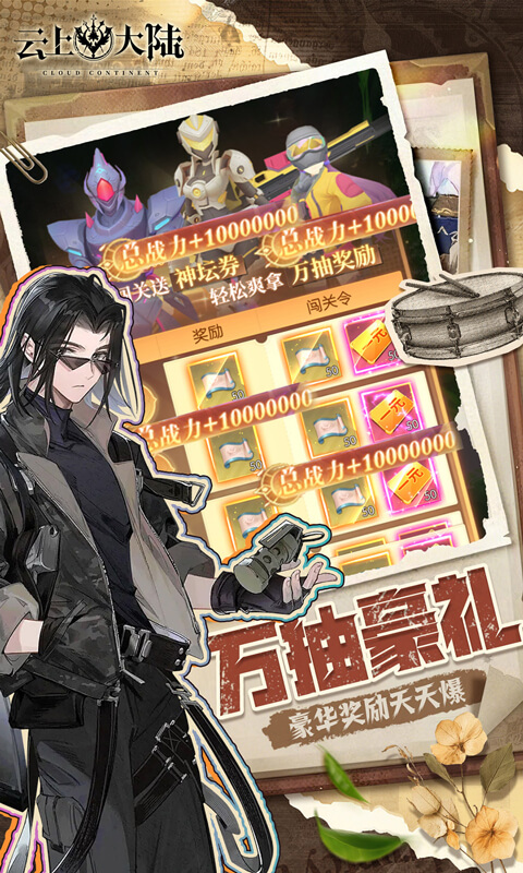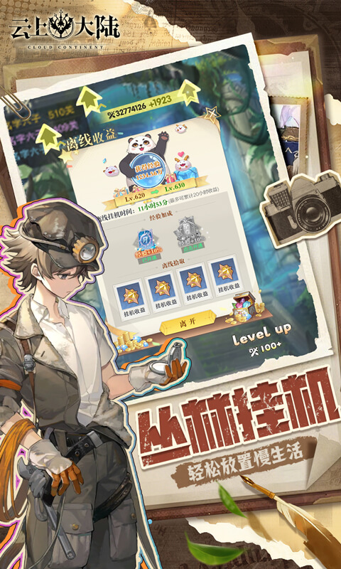 《云上大陆》是一款奇幻世界冒险题材的3D放置挂机RPG手游;在这个遥远星系的云上大陆,玩家将扮演一名冒险者,在俄刻阿诺斯之神的庇护下,一路探险来到了欧斯之城,加入冒险者公会与智慧高超的矮人族、身手敏捷的精灵族一起并肩作战,抵御邪恶龙族和强大兽人族的入侵、通过欧斯勇者竞技场层层选拔、驯服神龙、收服坐骑,完成勇者试炼,接受女神的“英雄王者”授勋,成为云上大陆的守护者,守护云上大陆和平!