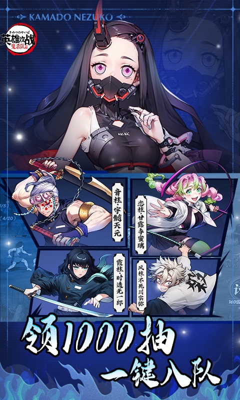 特色皮肤系统再现角色背景故事,登录领千抽直送SSR,轻松集齐全卡池,无损转换,重生回退不限,轻烧脑微手操策略改变阵容应对每个鬼杀场景!