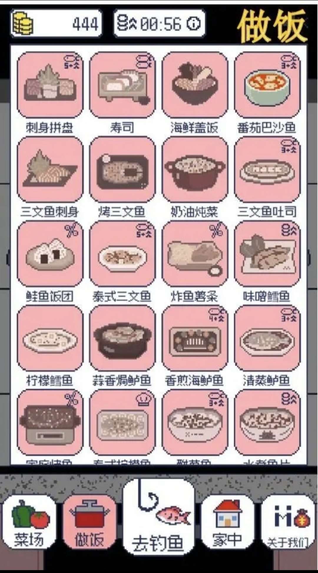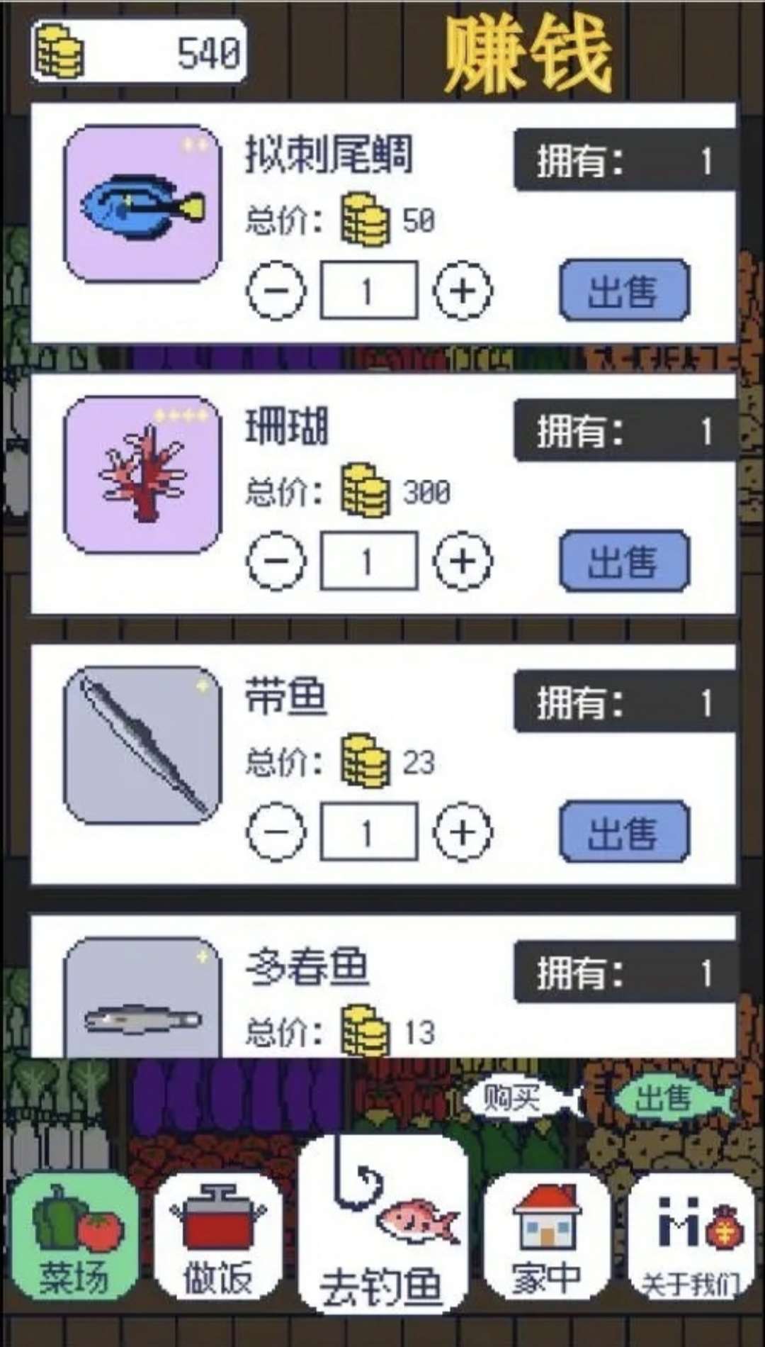 《偷偷钓个鱼》是一款以复古像素风格为特色的钓鱼游戏。游戏设定在一个宁静的渔村,透过简单而富有吸引力的画面,玩家能够感受到一种怀旧的氛围。这个小村庄拥有丰富的水域以及各种独特的鱼类,玩家将化身钓鱼爱好者,融入这片静谧的钓鱼天地。游戏通过清新的色彩和简朴的场景设计,让人仿佛回到了那段经典游戏的时代。