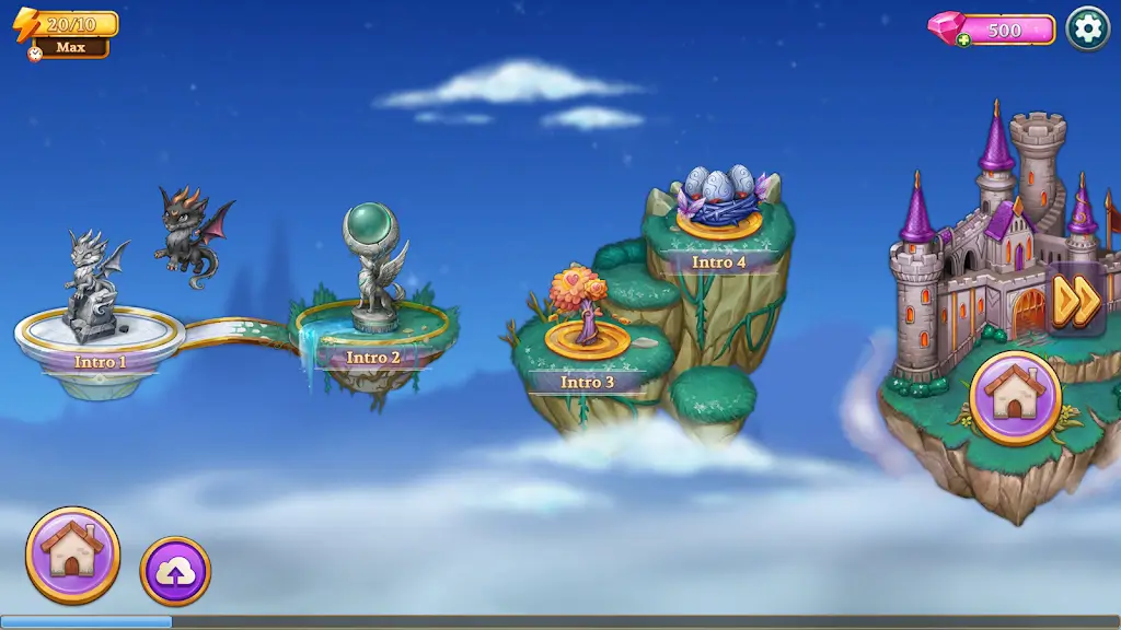 龙是这个游戏中不可或缺的一部分。在合并城堡:宅邸谜题中,你将能够发现和收集数以百计的龙。每一只龙都有独特的特性和能力,玩家需要通过合并与培育来让它们成长。收集不同的神话生物,包括独角兽、魔龙等,它们将为你的王国增添更多色彩,帮助你进行资源采集和任务完成。