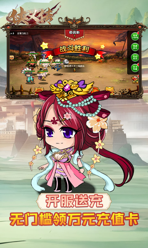 画面上,游戏采用 Q 版卡通画风,武将人物造型 Q 萌可爱。技能释放时独特的动作和特效,为玩家带来全新的作战体验和视觉享受。