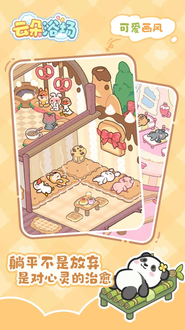 《云朵浴场(测试)》的画风清新可爱,色彩绚丽,营造出一个温馨而舒适的环境。玩家不仅能感受到经营的乐趣,更能享受到视觉上的愉悦。配合轻松的背景音乐,游戏的整体氛围让人放松,仿佛置身于一个理想的度假胜地,能让人暂时逃离现实生活中的压力,感受小动物们悠闲自在的生活。