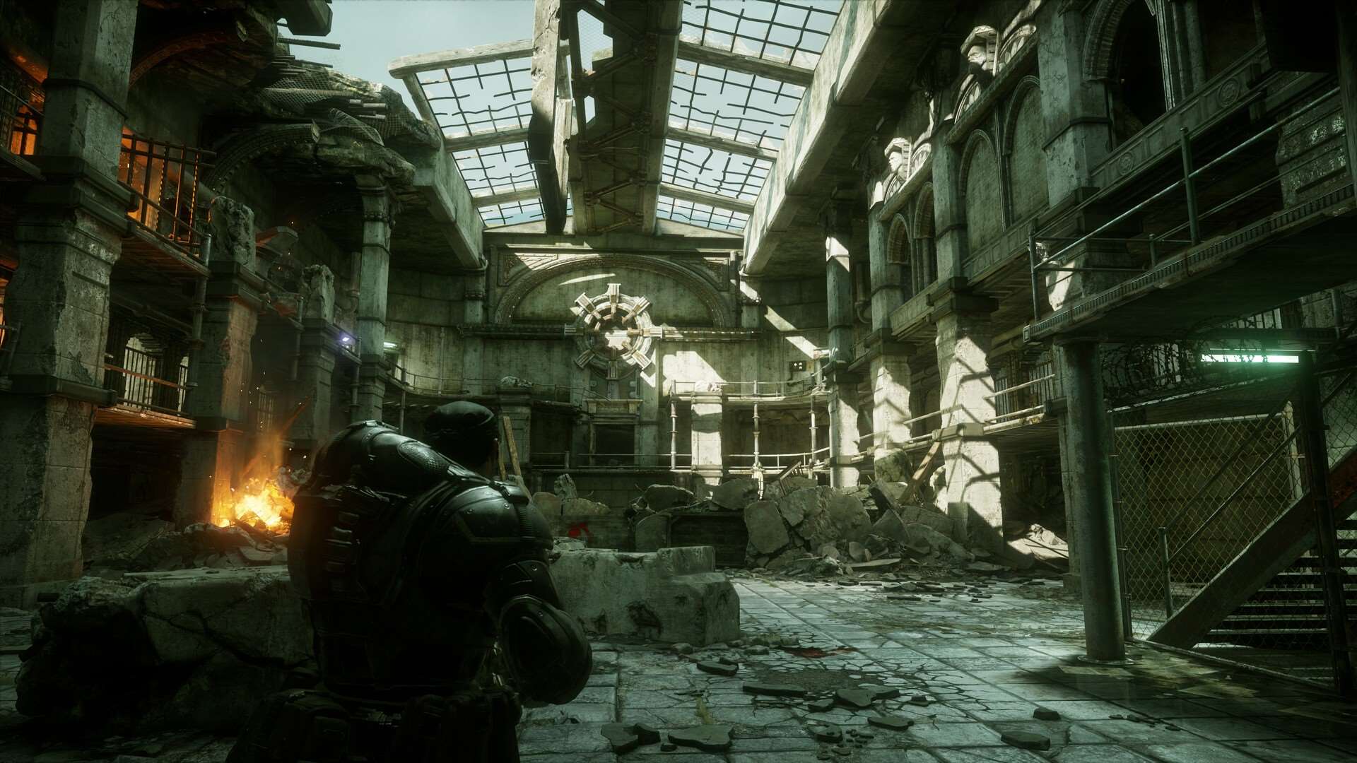 在未来的某个时刻,地球被一种名为蝗虫族的外星生物侵略,世界陷入了无尽的混乱与恐惧。经过一场前所未有的战争后,地下怪物彻底破坏了人类文明,城市变成废墟,人类的生存岌岌可危。在这个绝望的环境中,主角Marcus Fenix——一名被抛弃的囚犯,注定要承担起拯救人类的使命。