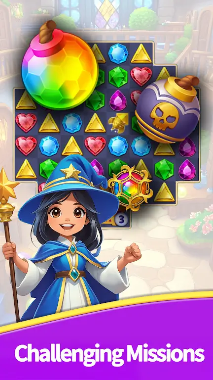 欢迎来到魔法学院:宝石消消乐,一个充满奇幻色彩和神秘冒险的三消益智游戏。在这里,你将帮助一位年轻女巫解锁她的魔法潜能,与她一起经历一段充满挑战与惊喜的旅程。每一步都能让你更深入地了解这个神秘的学院,揭开她背后的秘密。