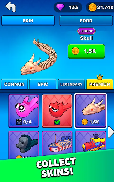 本游戏不只是内容丰富,视效体验同样令人惊艳。游戏中采用了绚丽的3D图形和流畅的动画效果,仿佛置身于一个与众不同的贪吃蛇世界。每一种皮肤和图案都设计得非常独具特色,极大地增强了游戏的表现力。你可以解锁各种酷炫的蛇皮,展示自己在游戏中的风采,吸引更多目光的关注。