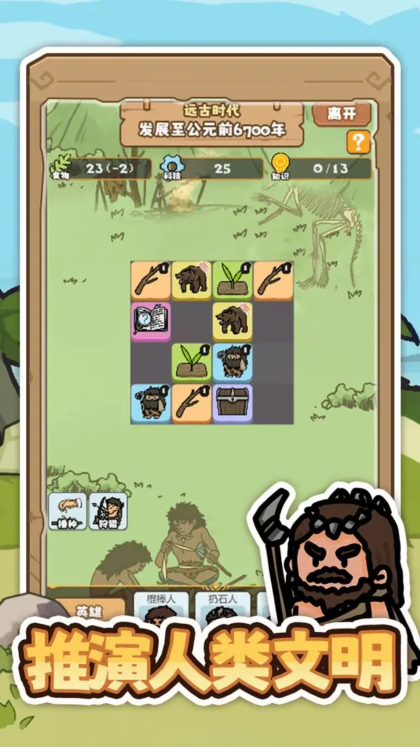 在《文明推演》中,你将经历人类历史上最重要的阶段,从最初的采集和狩猎,到定居与农业的兴起,从工业革命到信息化时代,每一个历史节点都由你的决策来影响。不仅如此,游戏中的每一个合成都将带来新的发展选择,帮助你全面了解人类文明的演进。每个时代都有独特的挑战和机遇,玩家必须灵活应对,以确保文明的持续发展。