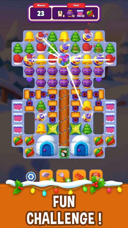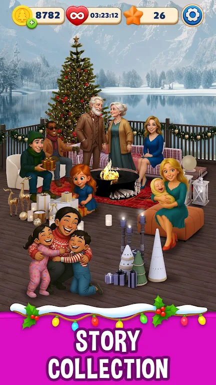 游戏的核心在于有趣且富有挑战性的三消谜题。您将面对数百个独特的关卡,解决这些关卡不仅能获得丰厚的奖励,还能够帮助每个家庭实现他们的节日梦想。从装饰圣诞树到选择合适的节日灯饰,您需要通过智慧和策略来完成每个拼图。完成后,您将赢得星星,解锁更丰富的装饰品和家具,让每个家庭的家都焕然一新。