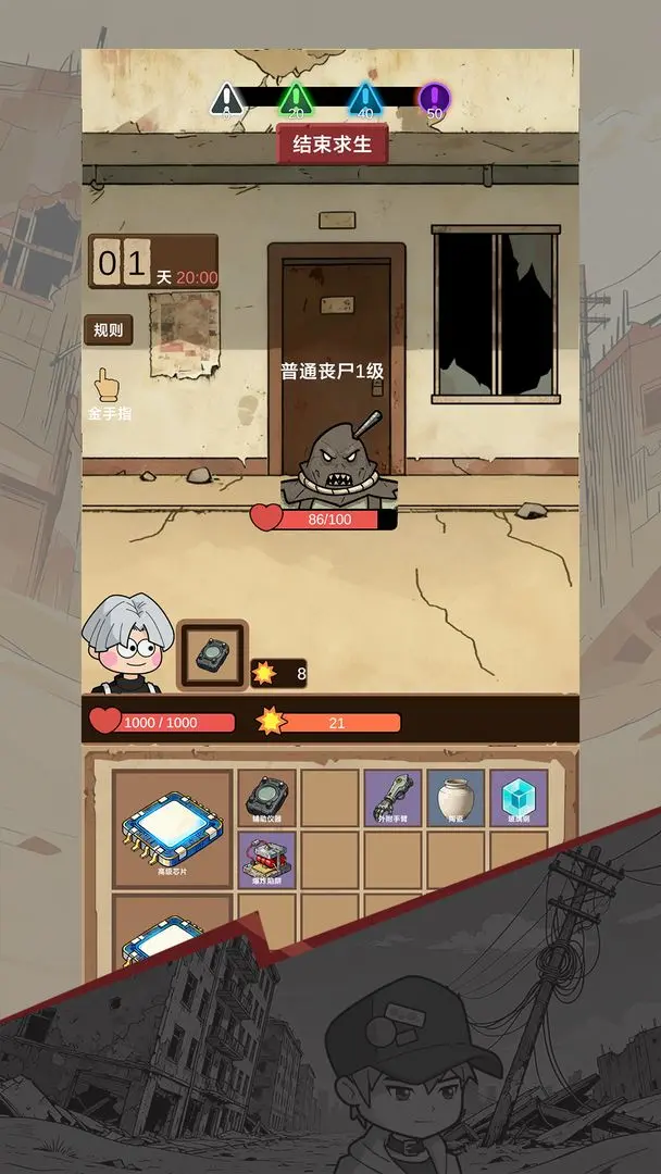 在《宿舍求生:废土篇》中,你的生存之路共计有50天。每一天的室外探索和夜晚的防御战斗都是对你生存技能的考验。随着日数增加,敌人会逐渐变得更为强大,环境也将越发恶劣。你需要不断学习,完善自己的策略,让自己在这场生存挑战中稳健前行,最终成功度过艰难的50天。不同的决策、选择,这不仅是对生存技巧的考验,更是智力与胆略的双重挑战。