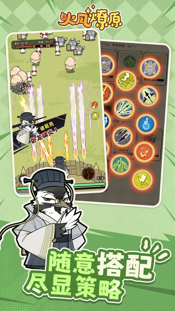 《火凤燎原》不仅仅是一款普通的弹幕塔防游戏,它将三国元素与动物角色巧妙结合,为玩家提供了一个充满挑战与乐趣的游戏体验。在这个世界里,英雄的传奇将由每一个玩家书写。通过技巧、智慧和团队合作,玩家将在每一场战斗中实现突破,享受属于自己的胜利。