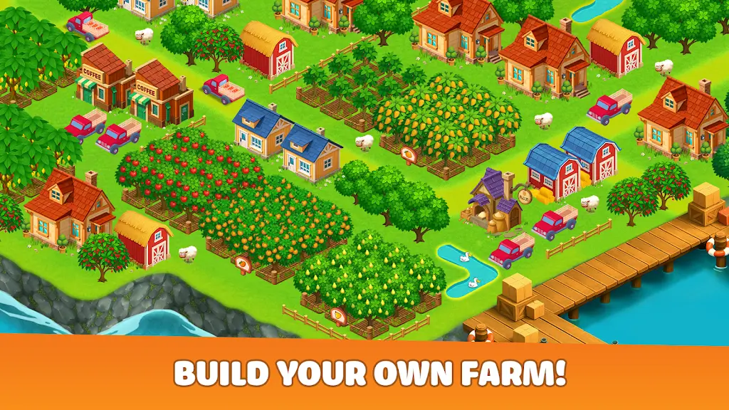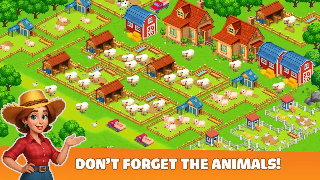 在发展农场的同时,您还可以规划和设计自己的农场城镇。通过建造迷人的房屋、舒适的小径和树木,您可以创建一个充满温馨与幸福的小镇。装饰农舍、丰富风景,打造一个让人流连忘返的农场社区,让您的农场不仅仅是一个生产基地,更成为一个和谐宜居的地方。