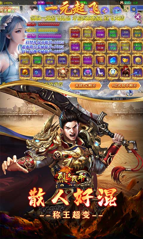 上线就送超级冠名,全屏拾取,自动回收,千倍爆率,首充大礼等等超绝豪礼!新超变,新玩法,不同体验,绝对带感!操作简单,玩法多样,直购币更是爆满地!散人好混,属性平衡,超多BUFF,时间就是一切!超级副本,超强神力,亿万攻击,亿万血量带你体验极致的数值体验!