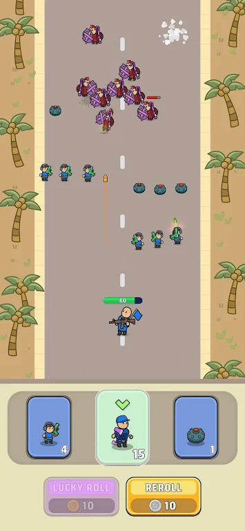 这款游戏还融入了丰富的机会和运气机制。通过老虎机式的卡牌掉落,你可能会获得意想不到的增援,或者触发幸运的分散事件,改变战局走向。这种不确定性不仅增加了游戏的趣味性,更让每一场战斗都充满了惊喜和挑战。