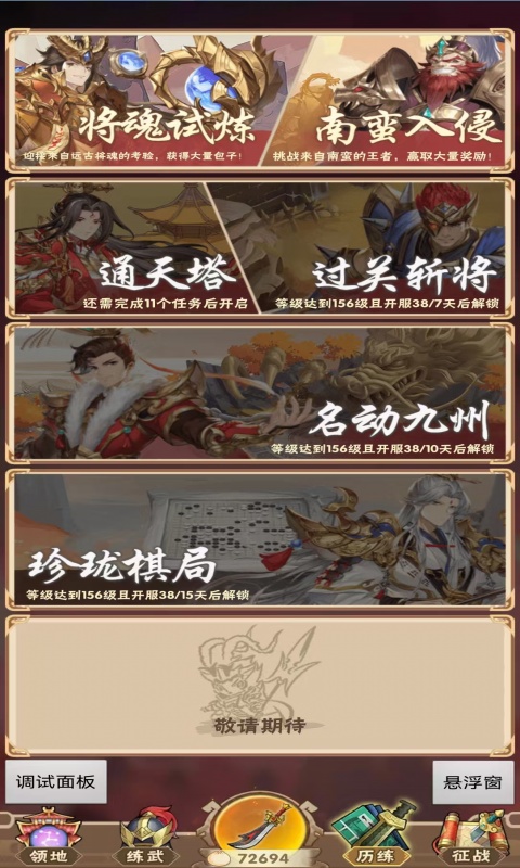 0.1 折开箱福利直接拉满,错过血亏!邪修秘宝现世!每日解锁普通→进阶→终极三重免费福利,开启即抱走自选武将、九龙宝图、招贤令 + 海量将魂,豪礼拿到手酸!买断特权性价比炸裂!每日稳拿 999999 铜币,再加 9980 金票(代金)天天领,氪金体验直接拉满!更有在线时长福利-金票随时长解锁,天天白拿超爽,零压力享福利!