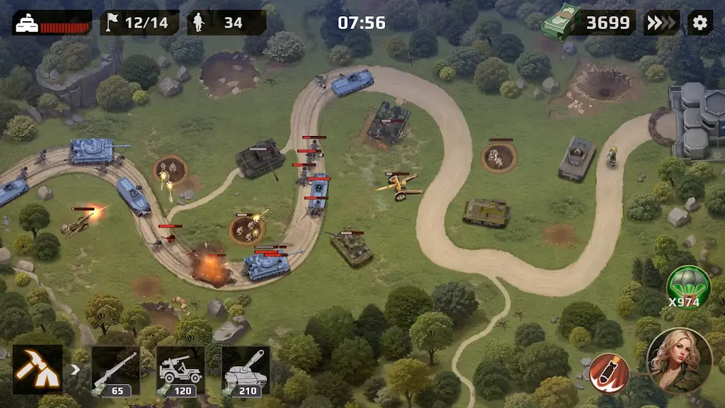 游戏中提供了丰富多样的部队选项,你不仅可以指挥步兵,还能调动各类坦克和重型装备。通过精准的战术部署,玩家可以构建出强大的防线,凭借多样化的战术选择来应对不同类型的敌军。将士兵、坦克和掩体巧妙安排在不同位置,形成有效的战斗阵型,充分发挥各类单位的优势。