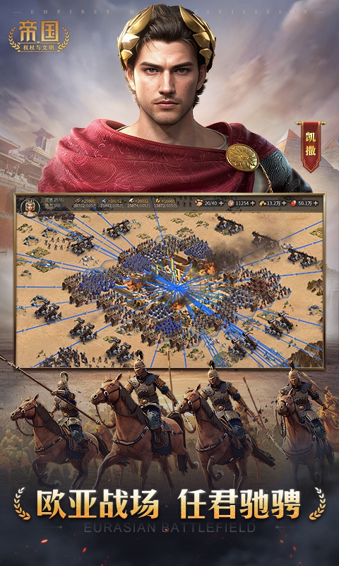 跳出三国局限,波斯、罗马、华夏、维京、不列颠五大文明盟军混搭,玩出新花样。资源不足免费征兵,充足则倍速征兵,轻松组建百万大军,攻城略地快人一步。