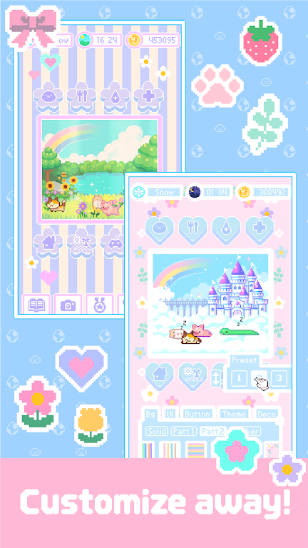 除了精心养护史莱姆,玩家也可以充分发挥想象力,通过多种主题和装饰物品来布置它们的生活空间。游戏内提供丰富的背景画布、贴纸以及可定制的用户界面,玩家可以根据自己的喜好来设计一个独一无二的栖息地。无论是温馨的小屋还是梦幻的仙境,都能展现玩家的创造力,营造出一个充满爱的氛围。