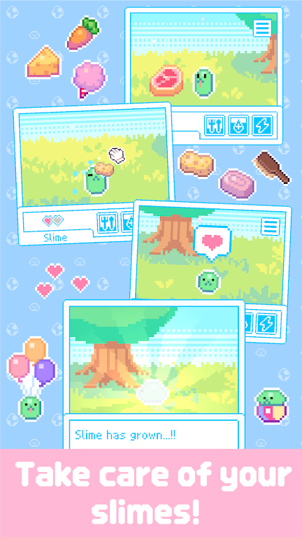 游戏的玩法简单而富有趣味,玩家需要通过一系列日常活动来照顾和培养自己的小动物。这包括定期喂食、洗澡、清理垃圾等。而在日常互动中,玩家能够与史莱姆进行多种趣味的小游戏,增进感情,同时提升动物的幸福度。随着时间的推移,经历这些日常关怀后,玩家的宠物将逐渐成长为更加可爱的模样。