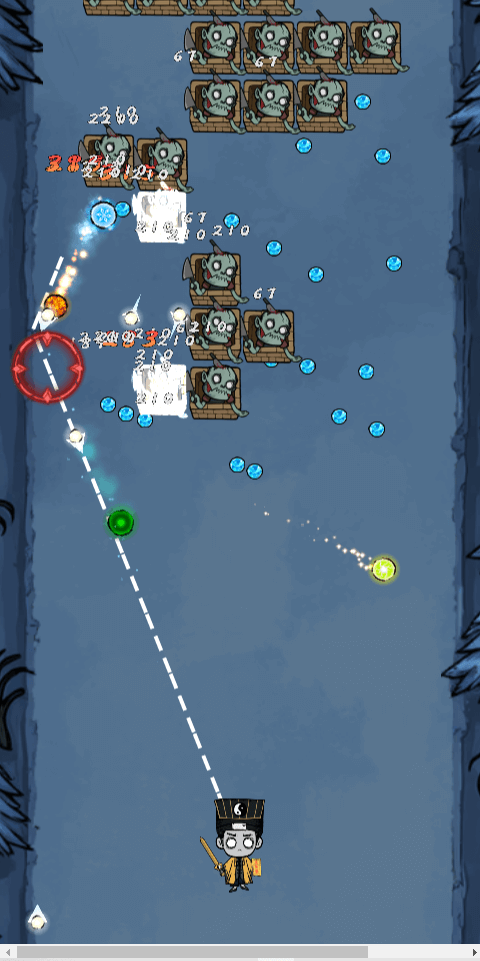 轻松解压的玩法:关卡开始时,玩家操控的茅山道士初始位置位于屏幕下方。随着游戏进程启动,屏幕将自动进行卷轴滚动,玩家需要持续向前推进。在前进的道路上,鬼怪会分批次出现,玩家需运用弹珠进行直接射击或通过间接反弹的方式对敌人造成伤害,以消灭所有敌人。若敌人成功抵达屏幕底部,将会触发自毁机制,对玩家角色造成伤害。当玩家推进至关卡末段时,将遭遇小BOSS的挑战;而在章节的最终关卡,玩家更将面对身形庞大且攻击威力强劲的最终BOSS,带来更为激烈的战斗体验。