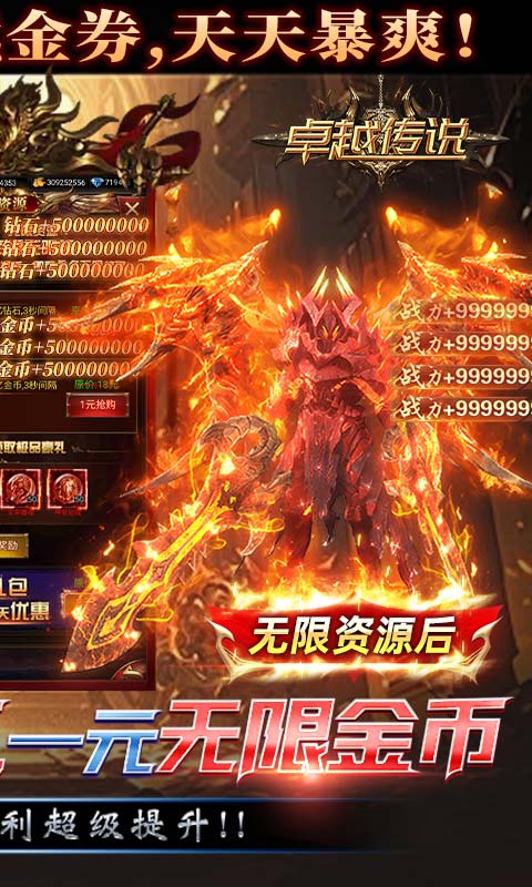 《卓越传说(3折免费版)》这款高福利手游颠覆传统玩法,以极致福利为核心亮点,让玩家轻松享受顶配游戏体验。上线即解锁尊贵 VIP 特权与实用金手指点充即送648,助力快速提升战力。登录就送丰厚奖励,无限资源领到手软,无需氪金也能解锁海量福利,各类累充奖励轻松入手。完成指定任务就能免费获取超炫酷套装。每日发放无门槛代金券,还有免费激活的首充福利,极品外显与尊贵魔阵免费拿。充值比例优厚,资源获取无压力,无需长时间肝度也能畅享游戏核心乐趣。福利覆盖成长全周期,从上线特权到日常奖励,让每一位玩家都能体验畅快进阶。各种华美造型随心搭,装备强化流光闪耀;高贵坐骑、炫彩大翅膀、神器神装加持,颜值实力双在线。精灵跟随助战,天神附体碾压全场;闯血色之地涨经验,攻恶魔要塞拿珍稀奖励。战盟盟主虚位以待,即刻加入《卓越传说》,探索唯美魔幻世界,燃动战盟之魂,书写你的传奇!