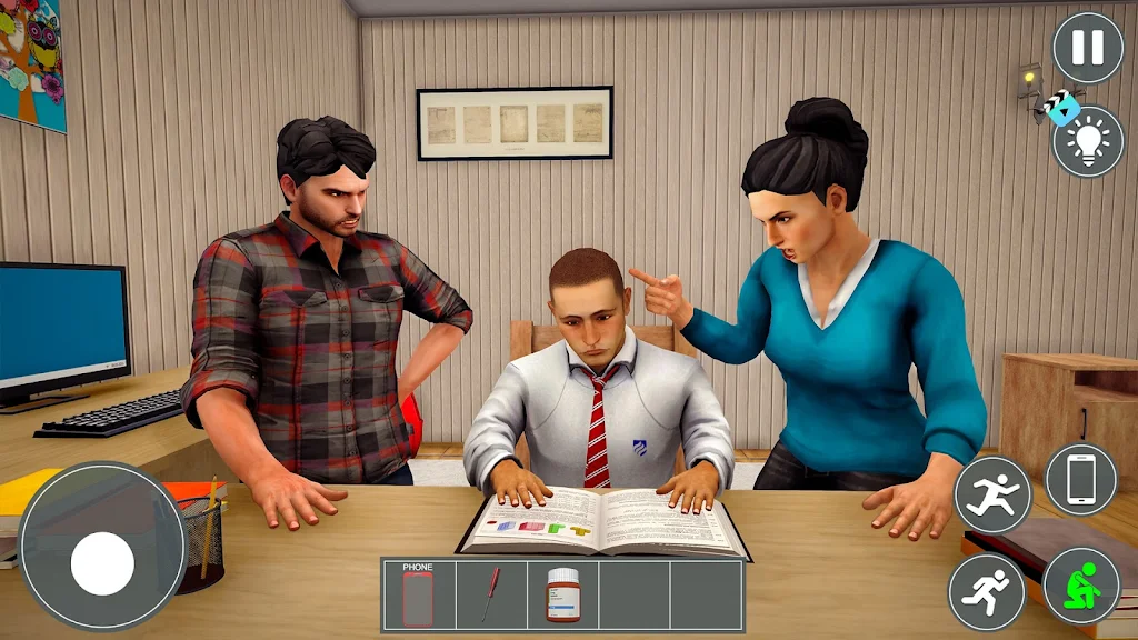 在这个游戏中,你将体验到一个小男孩的日常生活,他的父母十分严格,总是设定各种规则并惩罚不守规矩的行为。当他尝试与朋友们一起做有趣的事情时,父母则要求他完成繁重的学校作业,导致男孩心生不满。为了获得自由,他决定实施一个逃脱计划,开始了一场与时间和父母的斗智斗勇。