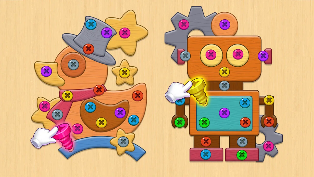 游戏的视觉设计风格充满趣味性,螺丝、工具和背景场景都经过精心打造,颜色鲜艳且细节丰富,为玩家提供了良好的视觉享受。音效方面,游戏中的每一次螺丝的旋转、固定和拆解都有清晰的音效反馈,让人感受到沉浸式的操作体验。这些元素共同营造出一个充满活力的游戏氛围,足以吸引玩家长时间沉浸其中。